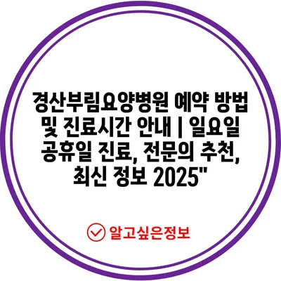 경산부림요양병원 예약 방법 및 진료시간 공지 | 일요일 공휴일 진료, 전연락 추천, 최신 정보 2025에 대해 자주 묻는 질문 TOP 5