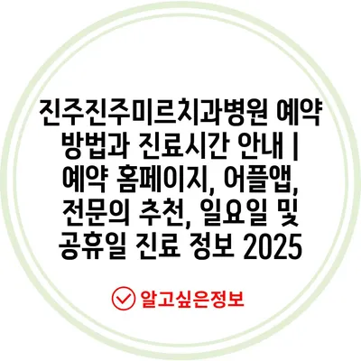 진주진주미르치과병원 예약 방법과 진료시간 공지 | 예약 홈페이지, 어플앱, 전연락 추천, 일요일 및 공휴일 진료 정보 2025에 대해 소개합니다.