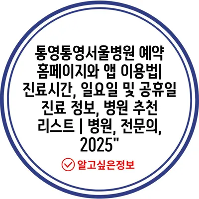 통영통영서울병원 예약 홈페이지와 앱 이용법| 진료시간, 일요일 및 공휴일 진료 정보, 병원 추천 리스트 | 병원, 전연락, 2025″ 에 대해 자주 묻는 질문 TOP 5