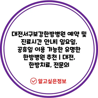 ✅ 대전서구보강한방병원의 진료시간과 예약 방법을 자세히 알아보세요.