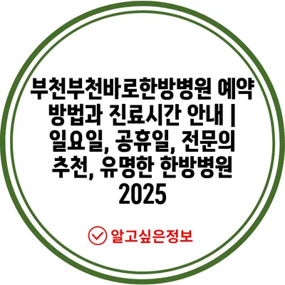 부천부천바로한방병원 예약 방법과 진료시간 안내 | 일요일, 공휴일, 전문의 추천, 유명한 한방병원 2025