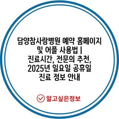 ✅ 담양참사랑병원 예약 방법과 필수 정보를 지금 바로 확인해보세요.