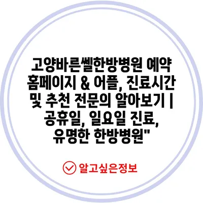 ✅ 고양바른쎌한방병원의 진료시간과 예약 방법을 자세히 알아보세요.