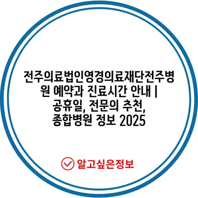 전주의료법인영경의료재단전주병원 예약과 진료시간 공지 | 공휴일, 전연락 추천, 종합병원 정보 2025 에 대해 자주 묻는 질문 TOP 5