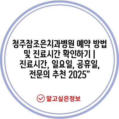 청주참조은치과병원 예약 방법 및 진료시간 확인하기 | 진료시간, 일요일, 공휴일, 전연락 추천 2025에 대해 자주 묻는 질문 TOP 5