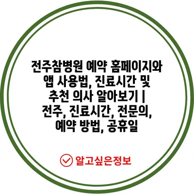 ✅ 전주참병원 예약 방법과 진료시간을 바로 알아보세요!