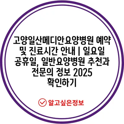 고양일산메디안요양병원 예약 및 진료시간 공지 | 일요일 공휴일, 일반요양병원 추천과 전연락 정보 2025 확인하기