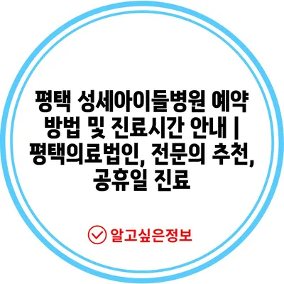 ✅ 평택 성세아이들병원의 진료시간과 예약 방법을 한눈에 알아보세요.