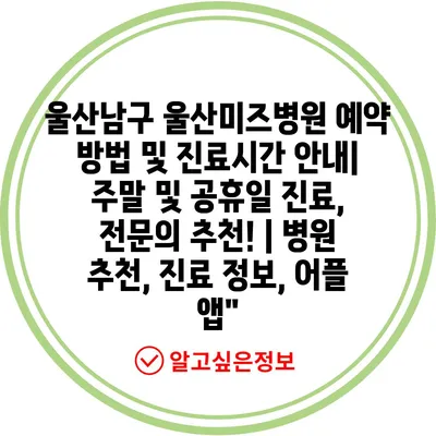 ✅ 울산미즈병원의 예약 방법과 진료시간을 자세히 알아보세요.