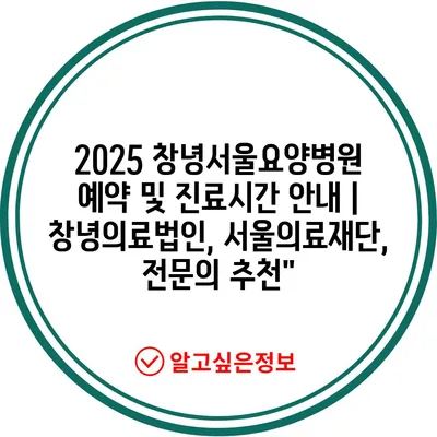 2025 창녕서울요양병원 예약 및 진료시간 안내 | 창녕의료법인, 서울의료재단, 전문의 추천”