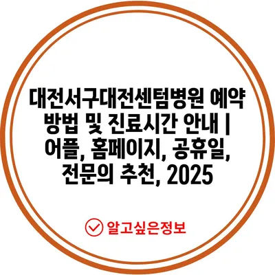 대전서구대전센텀병원 예약 방법 및 진료시간 공지 | 어플, 홈페이지, 공휴일, 전연락 추천, 2025 에 대해 자주 묻는 질문 TOP 5