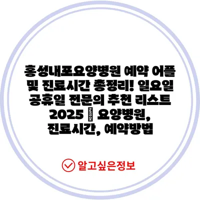 홍성내포요양병원 예약 어플 및 진료시간 총정리! 일요일 공휴일 전연락 추천 리스트 2025 | 요양병원, 진료시간, 예약방법 에 대해 자주 묻는 질문 TOP 5