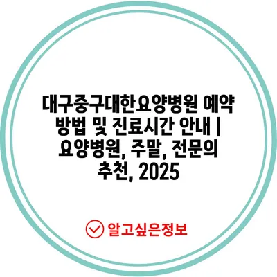 대구중구대한요양병원 예약 방법 및 진료시간 공지 | 요양병원, 주말, 전연락 추천, 2025 에 대해 자주 묻는 질문 TOP 5