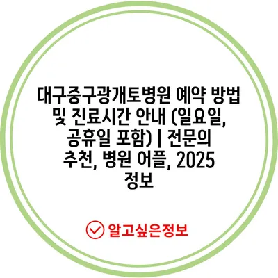 대구중구광개토병원 예약 방법 및 진료시간 공지 (일요일, 공휴일 포함) | 전연락 추천, 병원 어플, 2025 정보 에 대해 자주 묻는 질문 TOP 5