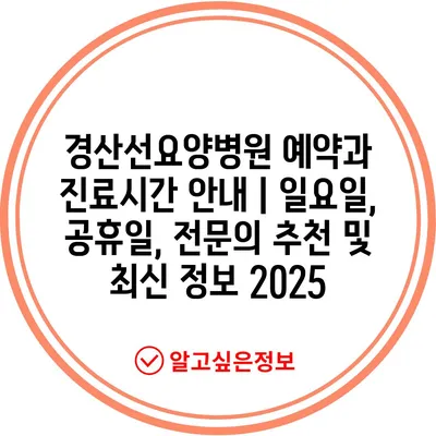 경산선요양병원 예약과 진료시간 공지 | 일요일, 공휴일, 전연락 추천 및 최신 정보 2025