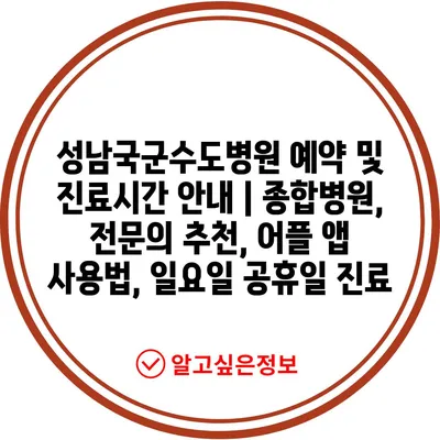 ✅ 성남국군수도병원의 예약 방법과 진료시간을 자세히 알아보세요.