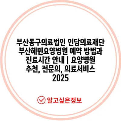 부산동구의료법인 인당의료재단 부산혜민요양병원 예약 방법과 진료시간 공지 | 요양병원 추천, 전연락, 의료서비스 2025 에 대해 자주 묻는 질문 TOP 5