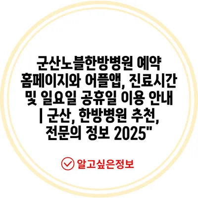 ✅ 군산노블한방병원의 진료시간과 예약 방법을 알아보세요.