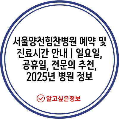 서울양천힘찬병원 예약 및 진료시간 공지 | 일요일, 공휴일, 전연락 추천, 2025년 병원 정보 에 대해 자주 묻는 질문 TOP 5