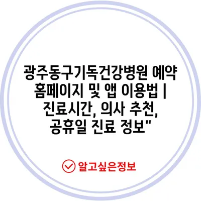 광주동구기독건강병원 예약 홈페이지 및 앱 이용법 | 진료시간, 의사 추천, 공휴일 진료 정보에 대해 알아보겠습니다.
