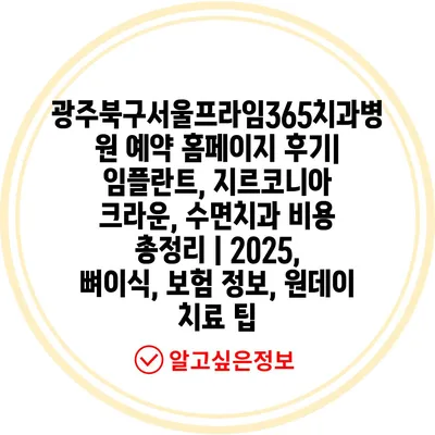 광주북구서울프라임365치과병원 예약 홈페이지 후기| 임플란트, 지르코니아 크라운, 수면치과 비용 총정리 | 2025, 뼈이식, 보험 정보, 원데이 치료 팁