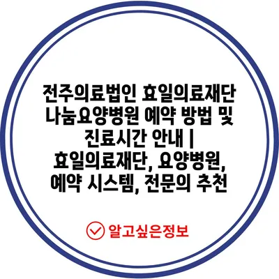 전주의료법인 효일의료재단 나눔요양병원 예약 방법 및 진료시간 안내 | 효일의료재단, 요양병원, 예약 시스템, 전문의 추천