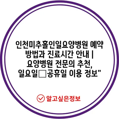 ✅ 인천미추홀인일요양병원의 예약 방법과 진료시간을 지금 바로 알아보세요!