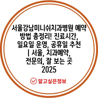 서울강남미니쉬치과병원 예약 방법 총정리! 진료시간, 일요일 운영, 공휴일 추천 | 서울, 치과예약, 전연락, 잘 보는 곳 2025 에 대해 자주 묻는 질문 TOP 5