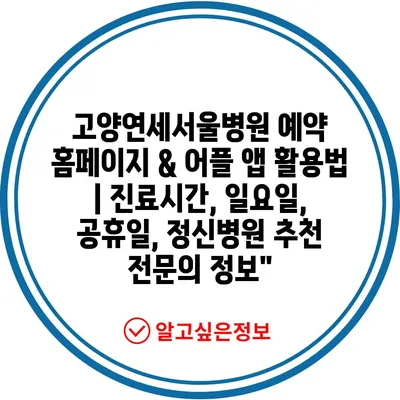 ✅ 고양연세서울병원의 진료시간과 예약 방법을 자세히 알아보세요.