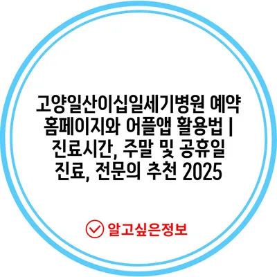 고양일산이십일세기병원 예약 홈페이지와 어플앱 활용법 | 진료시간, 주말 및 공휴일 진료, 전연락 추천 2025에 대해 알아보겠습니다.