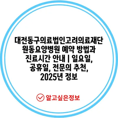 대전동구의료법인고려의료재단 원동요양병원 예약 방법과 진료시간 공지 | 일요일, 공휴일, 전연락 추천, 2025년 정보 에 대해 자주 묻는 질문 TOP 5