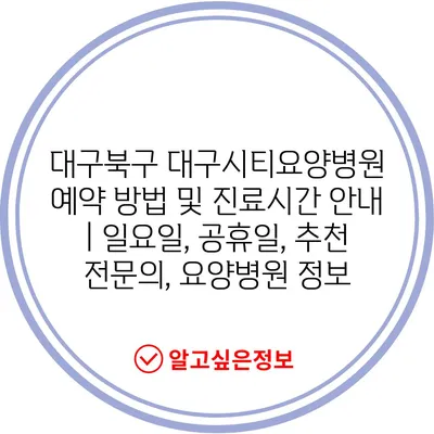 ✅ 대구시티요양병원의 진료시간과 예약 팁을 알아보세요.