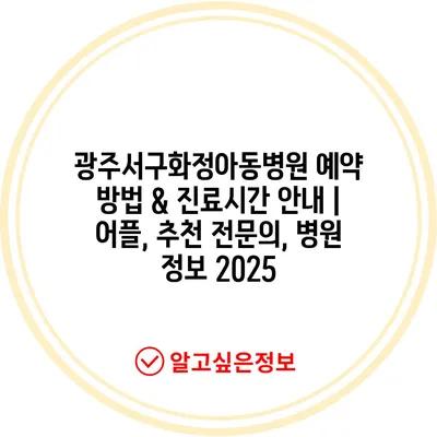 ✅ 광주서구화정아동병원의 진료시간과 예약 방법을 자세히 알아보세요.
