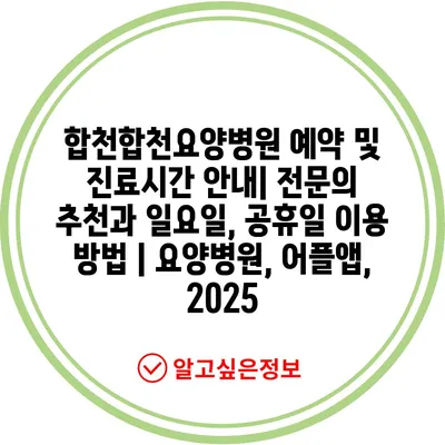 합천합천요양병원 예약 및 진료시간 공지| 전연락 추천과 일요일, 공휴일 이용 방법 | 요양병원, 어플앱, 2025 에 대해 자주 묻는 질문 TOP 5