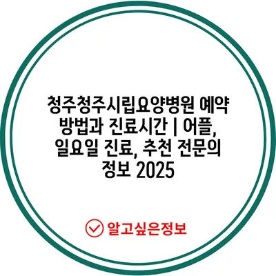 ✅ 청주청주시립요양병원 예약 방법을 자세히 알아보세요.