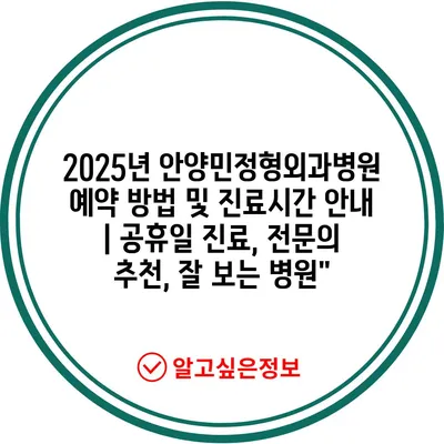 2025년 안양민정형외과병원 예약 방법 및 진료시간 공지 | 공휴일 진료, 전연락 추천, 잘 보는 병원에 대해 자주 묻는 질문 TOP 5