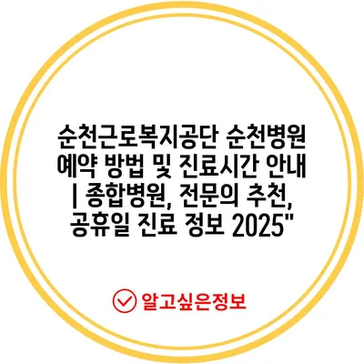 순천근로복지공단 순천병원 예약 방법 및 진료시간 안내 | 종합병원, 전문의 추천, 공휴일 진료 정보 2025″