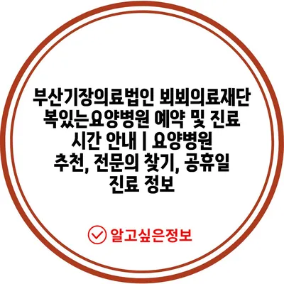 부산기장의료법인 뵈뵈의료재단 복있는요양병원 예약 및 진료 시간 공지 | 요양병원 추천, 전연락 찾기, 공휴일 진료 정보 에 대해 자주 묻는 질문 TOP 5