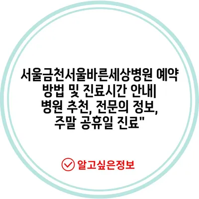 ✅ 서울금천서울바른세상병원의 예약 방법과 진료시간을 간편하게 알아보세요.