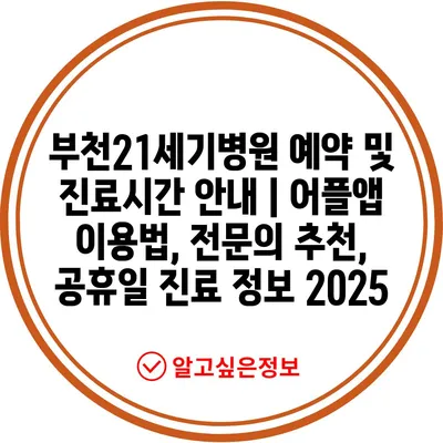 부천21세기병원 예약 및 진료시간 공지 | 어플앱 이용법, 전연락 추천, 공휴일 진료 정보 2025