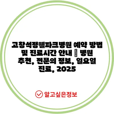 고창석정웰파크병원 예약 방법 및 진료시간 공지 | 병원 추천, 전연락 정보, 일요일 진료, 2025 에 대해 자주 묻는 질문 TOP 5