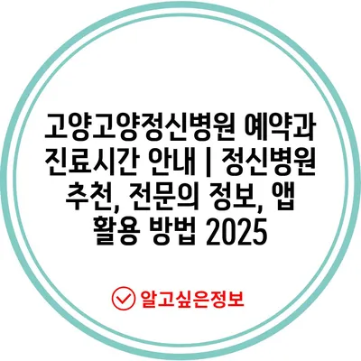 고양고양정신병원 예약과 진료시간 공지 | 정신병원 추천, 전연락 정보, 앱 활용 방법 2025