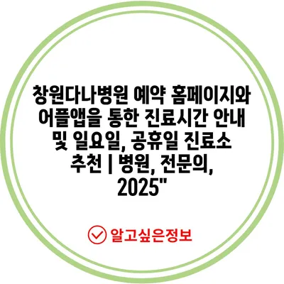 ✅ 창원다나병원의 진료시간과 예약 방법을 쉽게 알아보세요.