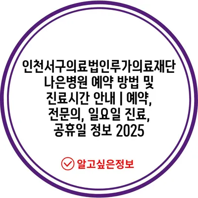 인천서구의료법인루가의료재단 나은병원 예약 방법 및 진료시간 공지 | 예약, 전연락, 일요일 진료, 공휴일 정보 2025