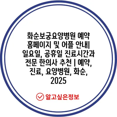 화순보궁요양병원 예약 홈페이지 및 어플 공지| 일요일, 공휴일 진료시간과 전문 한의사 추천 | 예약, 진료, 요양병원, 화순, 2025