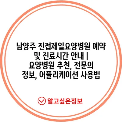✅ 진접제일요양병원의 예약 방법과 진료시간을 지금 바로 알아보세요!