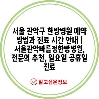 ✅ 서울 관악구 한방병원 예약 방법과 진료 시간을 쉽게 알아보세요.