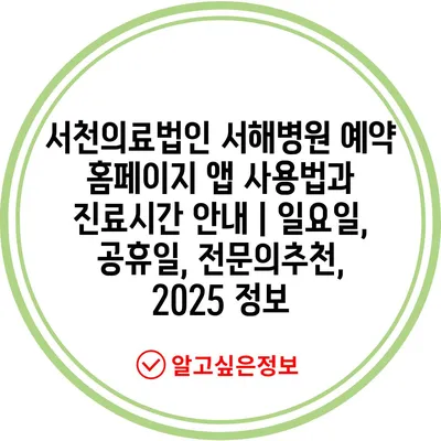 서천의료법인 서해병원 예약 홈페이지 앱 사용법과 진료시간 안내 | 일요일, 공휴일, 전문의추천, 2025 정보
