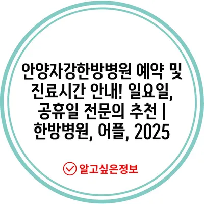 안양자강한방병원 예약 및 진료시간 공지! 일요일, 공휴일 전연락 추천 | 한방병원, 어플, 2025 에 대해 자주 묻는 질문 TOP 5