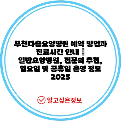 부천다솜요양병원 예약 방법과 진료시간 공지 | 일반요양병원, 전연락 추천, 일요일 및 공휴일 운영 정보 2025에 대해 알아보겠습니다.